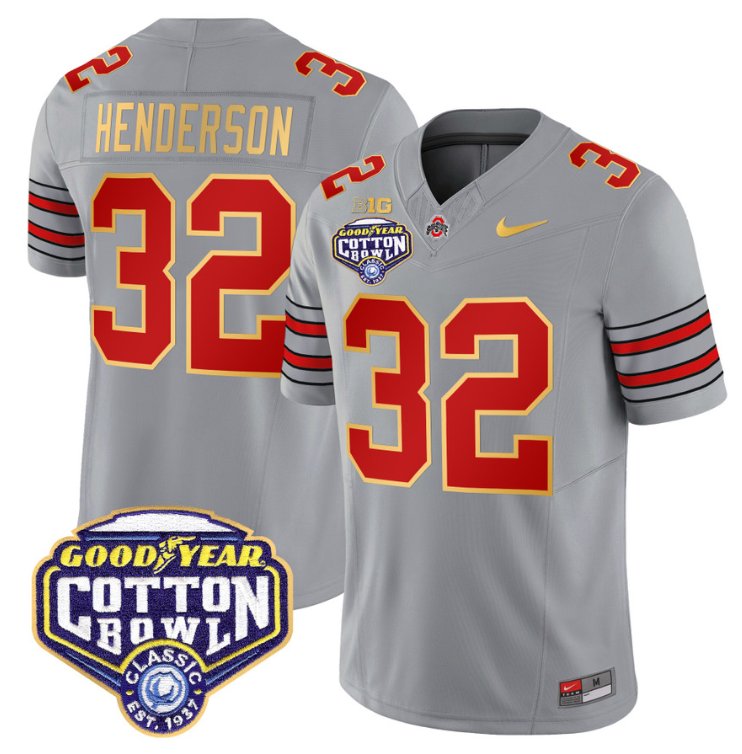 Treveyon Henderson Jersey #32 Ohio State ‘Heritage Stripe’ Cotton Bowl Gray