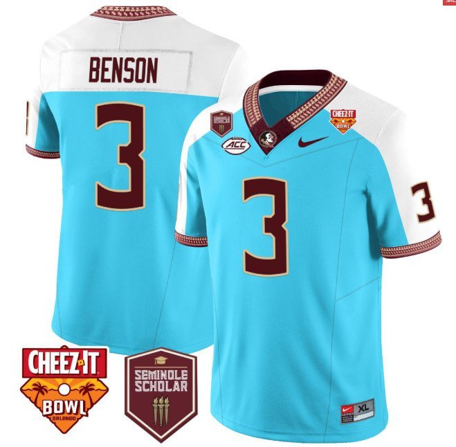 Trey Benson #3 Florida State Seminoles Scholar Cheezit Bowl Vapor – Blue