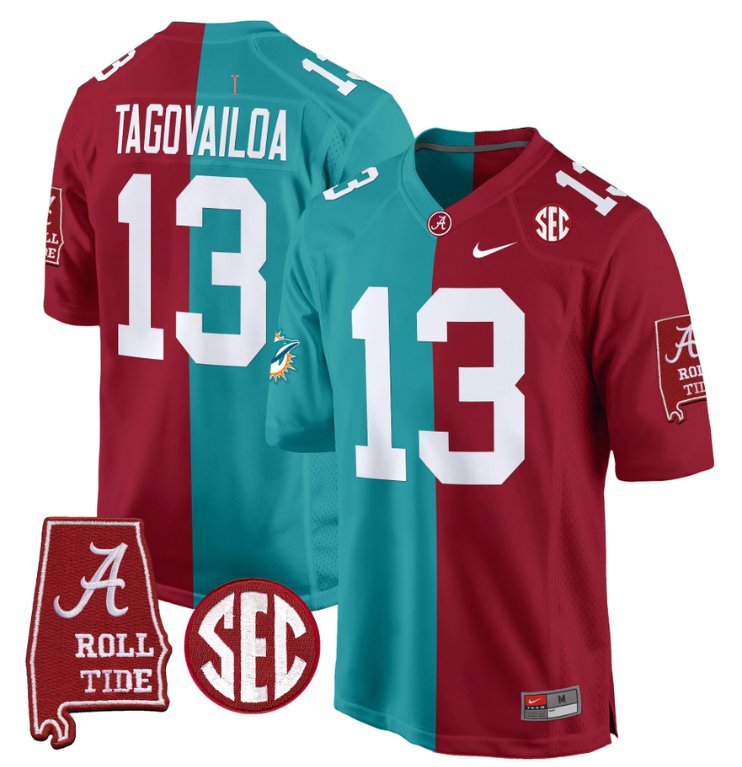 Tua Tagovailoa #13 Alabama Crimson Tide Split Game Stitched