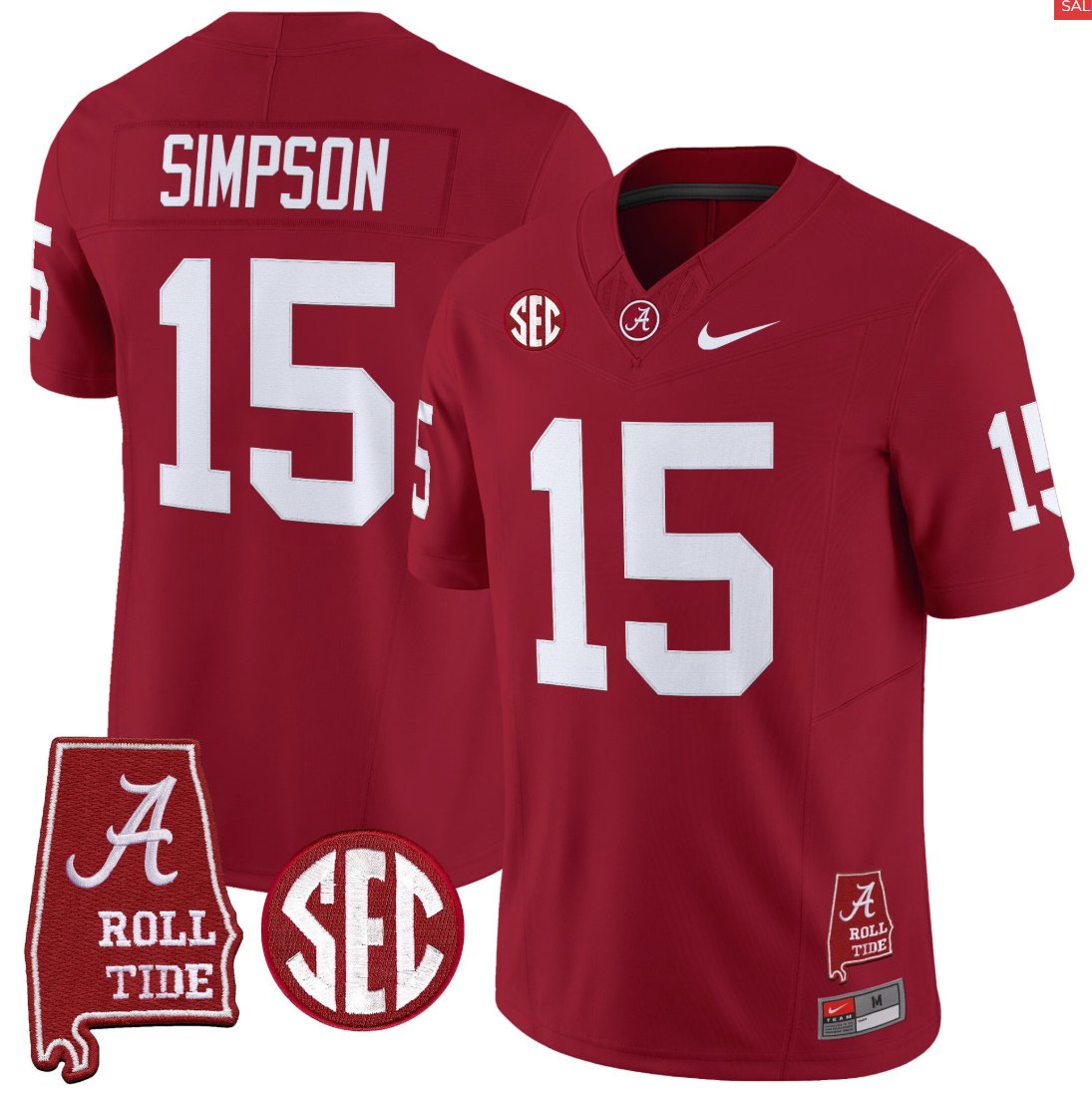Ty Simpson Jersey #15 Alabama Crimson Throwback Alabama Map Stitched Crimson
