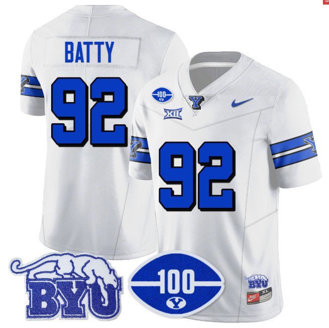 Tyler Batty #92 BYU 100th Season 2024 Uniform Vapor Patch College White