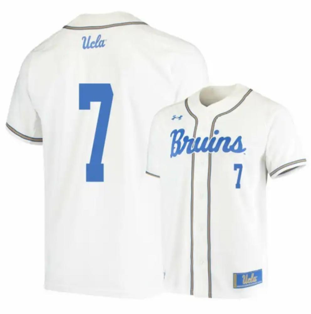 UCLA Bruins 7 JT Schwartz White College Baseball Jersey