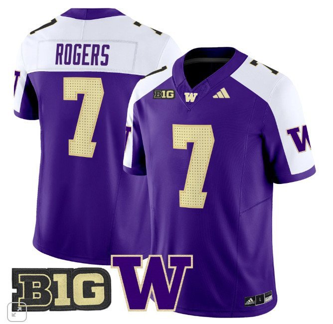 Will Rogers #7 Washington Huskies Home Vapor B1G Patch Purple Alternate