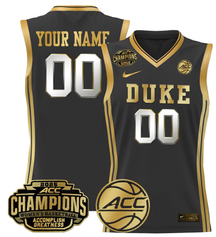 Women’s Custom Duke Blue Devils Jersey 2025 ACC Champions Lightweight Black Gold