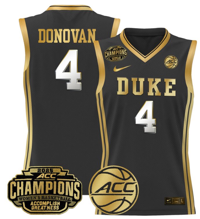 Women’s Jadyn Donovan Jersey #4 Duke Blue Devils 2025 ACC Champions Black Gold