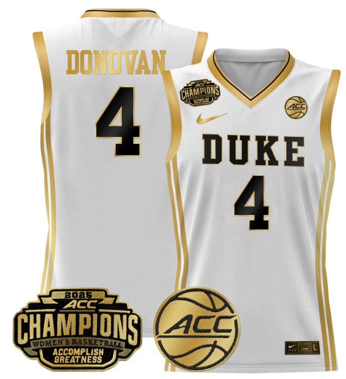 Women’s Jadyn Donovan Jersey #4 Duke Blue Devils 2025 ACC Champions White Gold