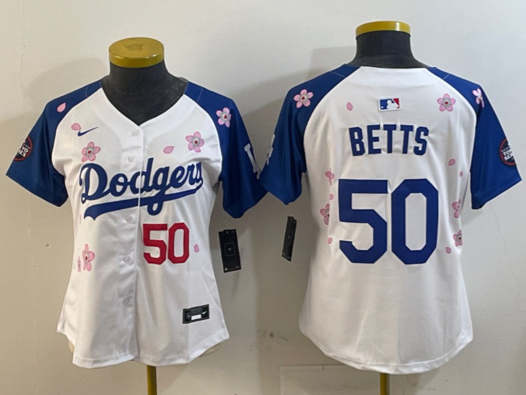 Women’s Mookie Betts #50 Los Angeles Dodgers Tokyo Series 2025 Jersey White