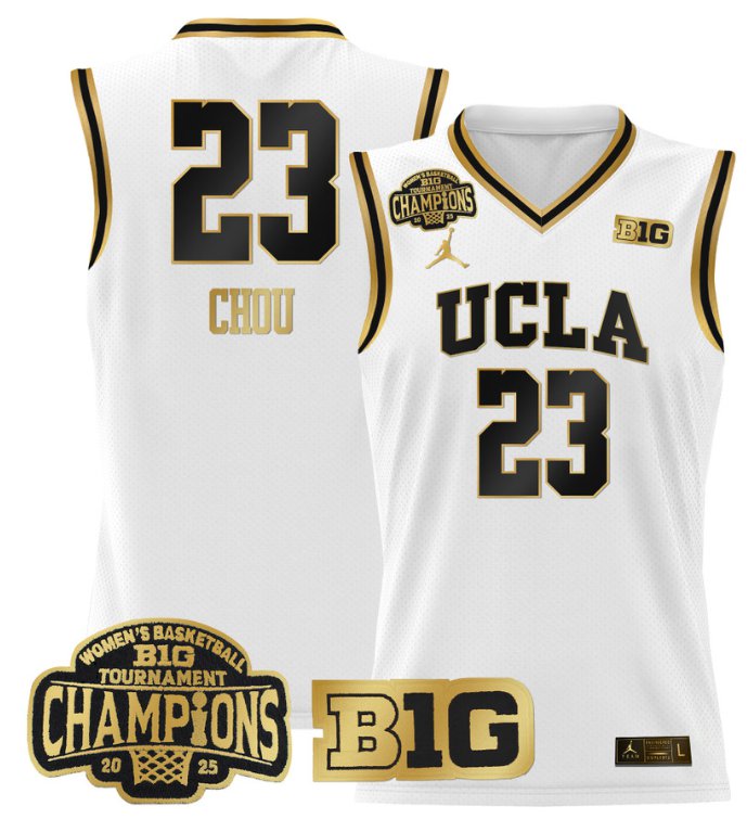 Women’s Natalie Chou Jersey #23 UCLA Bruins 2025 Champions Basketball White Gold