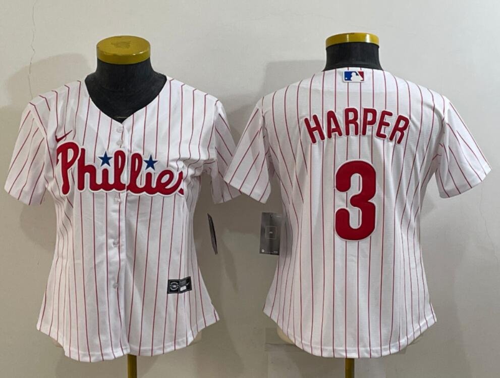 Women’s Or Youth Bryce Harper #3 Philadelphia Phillies Home Jersey – White Christmas Gift
