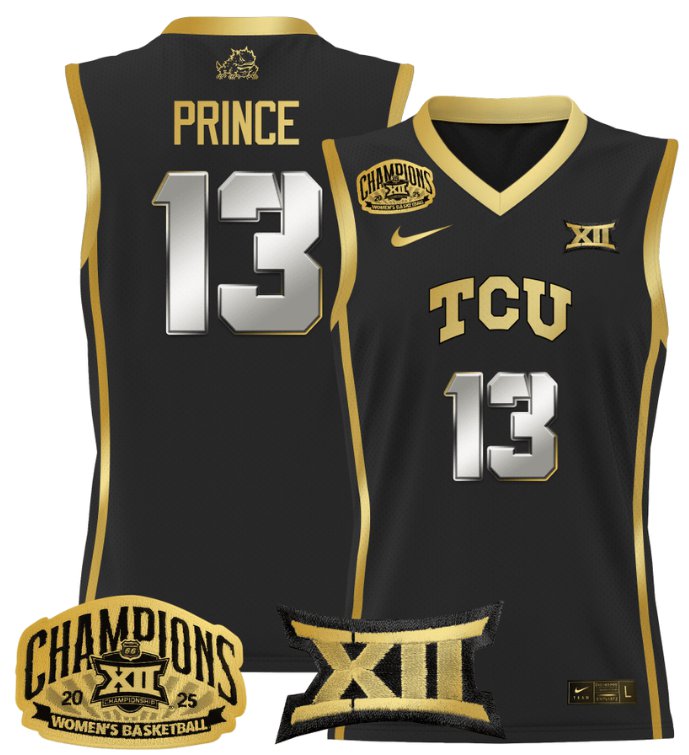 Women’s Sedona Prince Jersey #13 TCU Horned Frogs 2025 Champions Black Gold