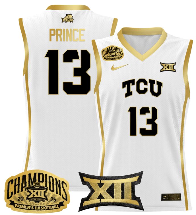 Women’s Sedona Prince Jersey #13 TCU Horned Frogs 2025 Champions White Gold