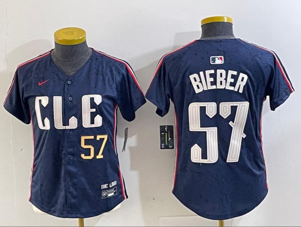 Women’s Shane Bieber #57 Cleveland Guardians 2024 City Connect Limited Jersey – Navy