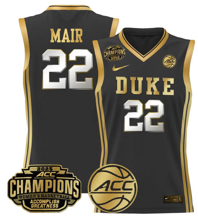 Women’s Taina Mair Jersey #22 Duke Blue Devils 2025 ACC Champions Black Gold