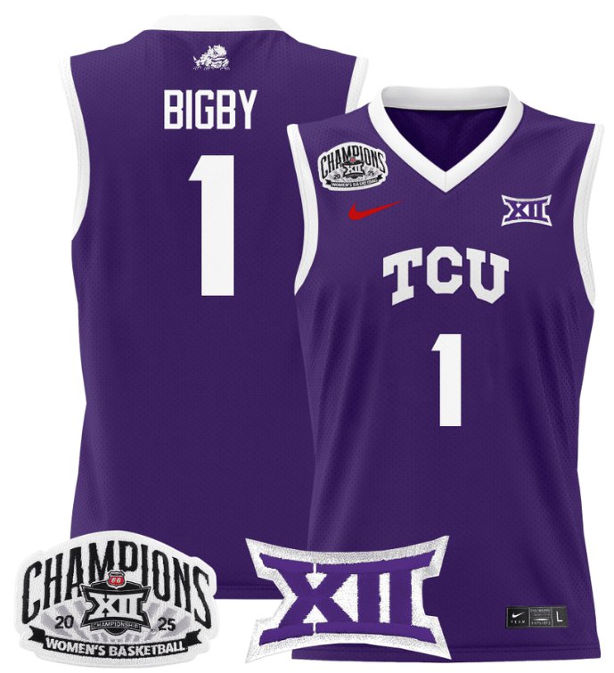 Women’s Taylor Bigby Jersey #1 TCU Horned Frogs 2025 Champions Purple