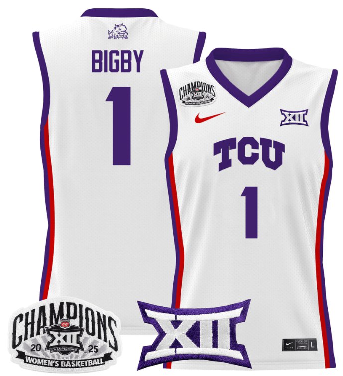 Women’s Taylor Bigby Jersey #1 TCU Horned Frogs 2025 Champions White