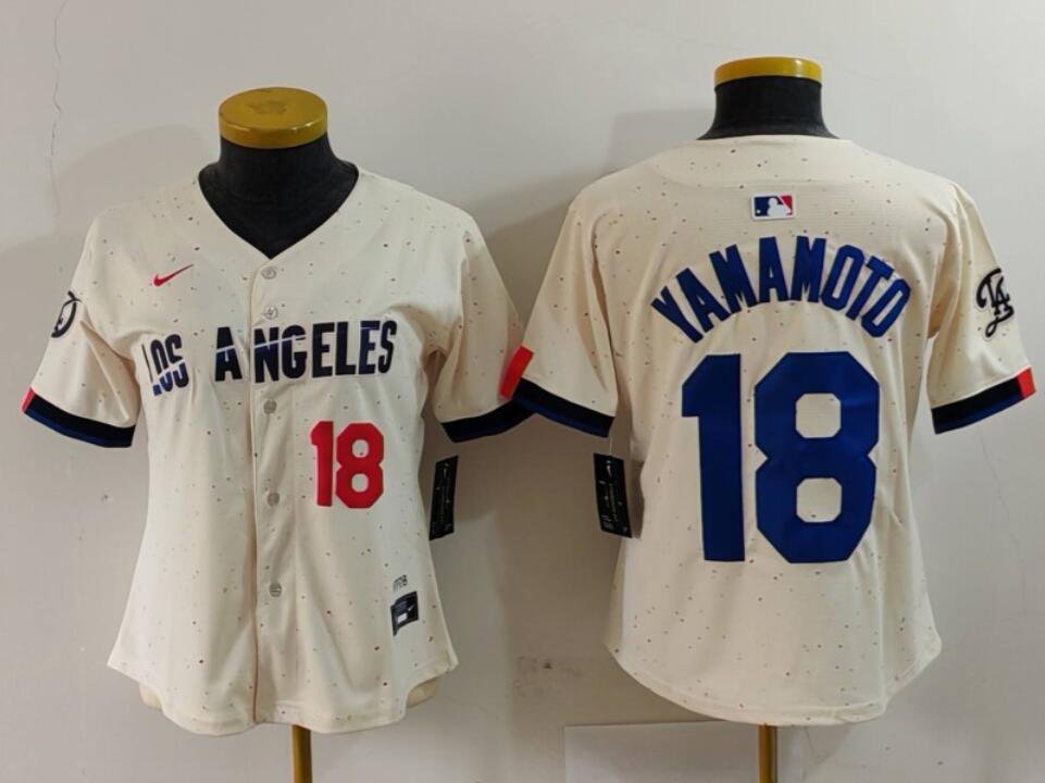 Women’s Yoshinobu Yamamoto #18 Los Angeles Dodgers Home Jersey Cream Christmas Gift