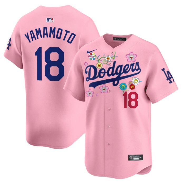 Yamamoto (Kanji) Jersey #18 Dodgers x Takashi Murakami 2025 Vapor Stitched Cherry Blossom