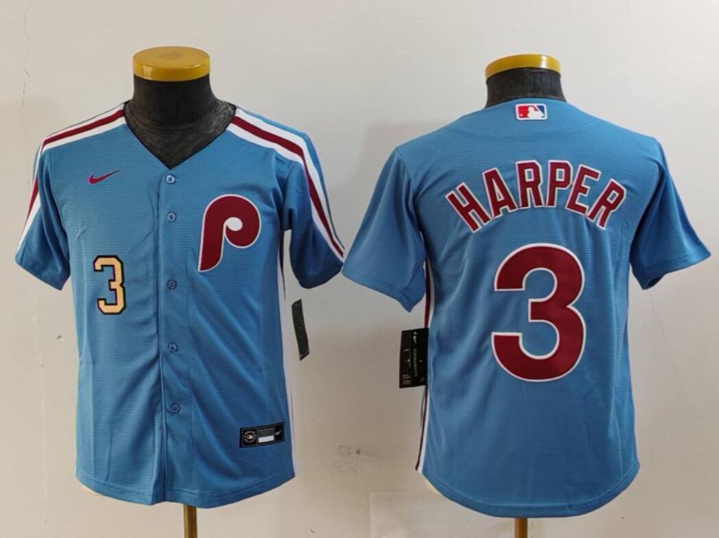 Youth Bryce Harper #3 Philadelphia Phillies Home Cooperstown Collection Jersey Royal Christmas Gift