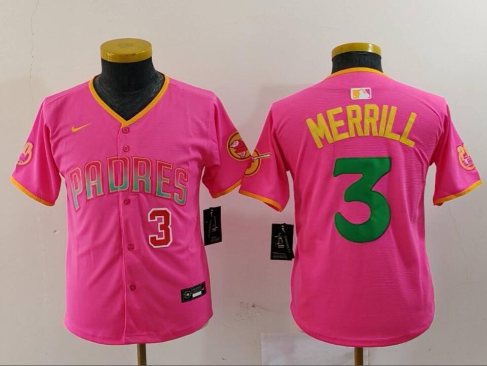 Youth Jackson Merrill #3 San Diego Padres Limited Player Jersey – Pink Christmas Gift