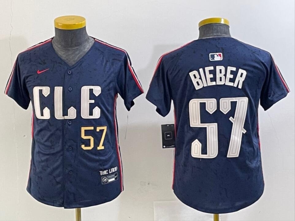Youth Shane Bieber #57 Cleveland Guardians 2024 City Connect Limited Jersey – Navy