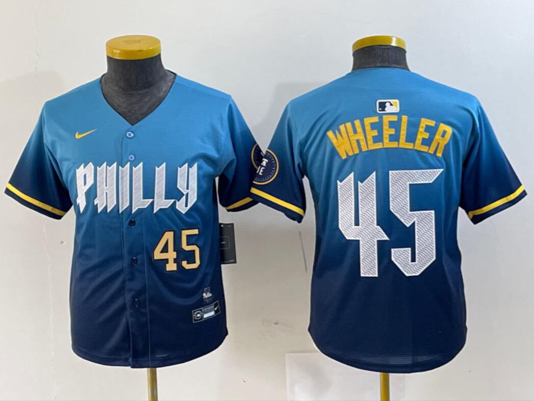 Youth Zack Wheeler #45 Philadelphia Phillies 2024 City Connect Limited Jersey Blue